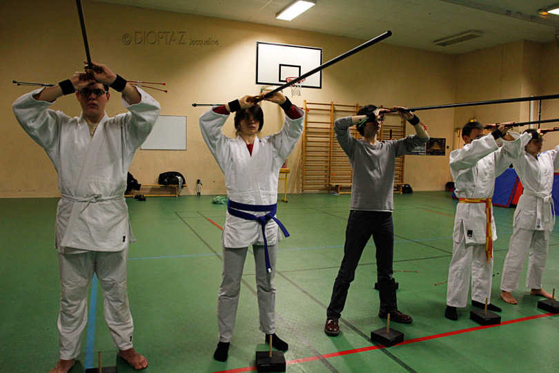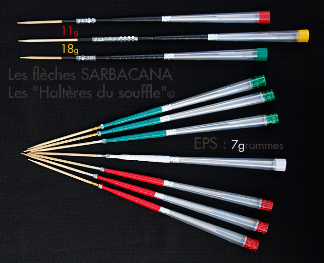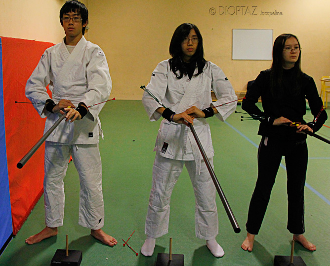 . Ainsi durant le kata le souffleur réalise une première volée de trois flèches (rouges), la sarbacane présentée comme un droitier ; puis une série de trois autres flèches (vertes), la sarbacane présentée comme un gaucher. Le cycle se boucle sur une septième flèche (blanche ou noir ) soufflée parfaitement face à la cible.)